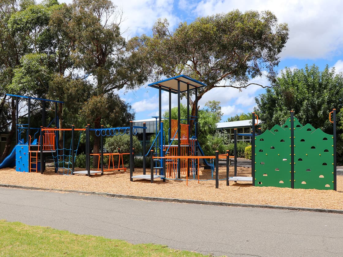 With the existing playground at Newcomb Park Primary School looking tired and worn out, and far overdue for replacement, the school decided to work with adventure+ to revitalise the play space. As the space was irregularly shaped, the designers at adventure+ created a special design spectrum+ steel playground. The unit includes a range of exciting activities, including, a Mountain Trek, Twist Net, Curved Hanging Rings and a double slide. As part of the project, adventure+ replaced the playground border and mulch undersurfacing.